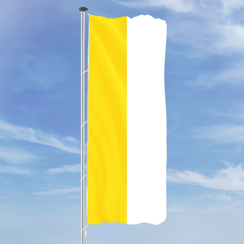 Die Hochformats Fahne Kirchenflagge Katholisch ist besonders langlebig und wetterfest. Sie ist sehr gut geeignet als Hissfahne für die Verwendung im Außenbereich.